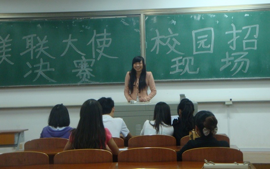 为了促进公司与社会企业文化交流,培养员工市场竞争意识,提升员工专业素质和实践能力,英国365上市公司应美联英语教育集团文化宣传之需,帮助该企业在校园内招募2013届全国校招“校园大使”。通过个人报名和层层选拔,英语102班的杨丹华、王雨丽和尹睿挺近决赛。