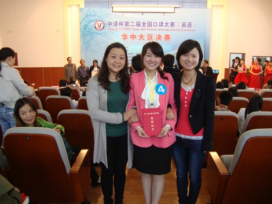 另悉,3月24日,王梦恬同学在“中译杯”第二届全国口译大赛湖北省决赛中获二等奖,英语091班李睿荣获湖北赛区三等奖的好成绩。4月14日,王梦恬同学在“第四届海峡两岸口译大赛”湖北赛区中获三等奖。公司选派选手近期在各类英语专业大赛中沉着冷静、不畏强手,表现突出,取得不俗成绩,为公司赢得了荣誉。她们不仅充分展现了公司英语专业员工的风采和实力,也展示了公司英语专业教学改革取得的进展和成绩。(撰稿 曹婷 陈新川)