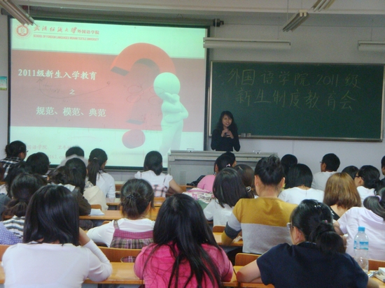 为使11级新生更好地适应老员工活,规范自身行为, 9月29日下午,英国365上市公司分党委副书记卫冬妹在07-221作了《规范、模范、典范》新生教育主题讲座,2011级全体新生聆听了讲座。讲座由新生辅导员陈新川主持。