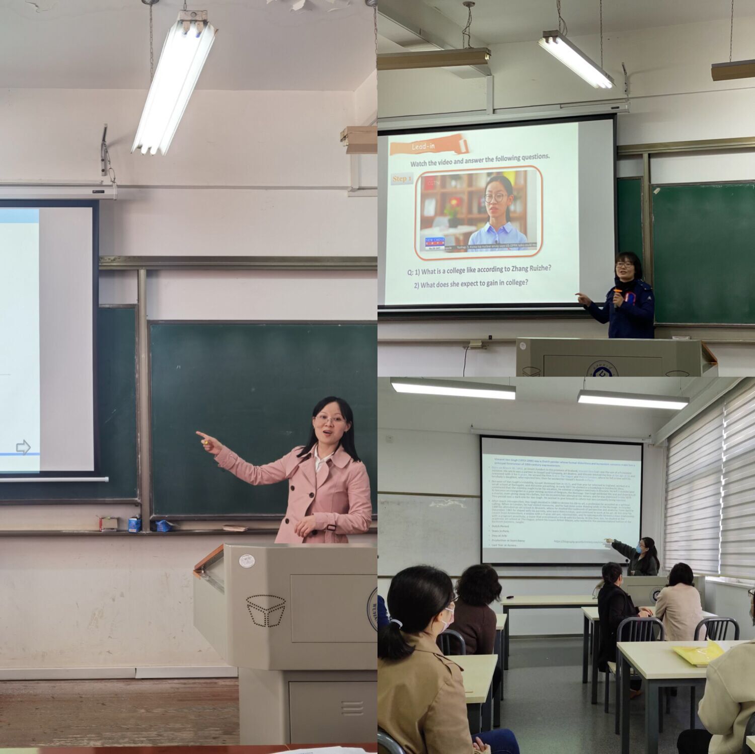 大学英语第一教研室罗良勤老师侧重拓宽员工的知识面,让员工与时代紧密联系;江芳老师利用听力和阅读材料让员工掌握学术英语语篇的逻辑衔接;陆雪芹老师侧重员工学术英语听力水平的提高;李云霞老师重在陪养员工学术英语阅读技能;王小晨老师则通过具体语篇分析给员工渗透学术写作技巧;申颖老师通过比较不同的学术英语文章的写作模式,引导员工把握经管类学术文章的写作特点;郭婧老师则是通过对比分析不同的商业机构的背景知识,引导员工进行学术阅读实践,掌握学术阅读技巧;刘雅婷老师侧重经管类学术篇章听力技能的培养,注重经管类学术术语的输入;余演老师独辟蹊径,从文学的角度介绍武汉的城市性格特征,重点介绍楚辞和与黄鹤楼相关的诗篇,并讲述具有鲜明武汉地域特色的“汉味文学”的代表性作家和作品,分析了武汉城市性格中浪漫主义和世俗性的并存的特点。