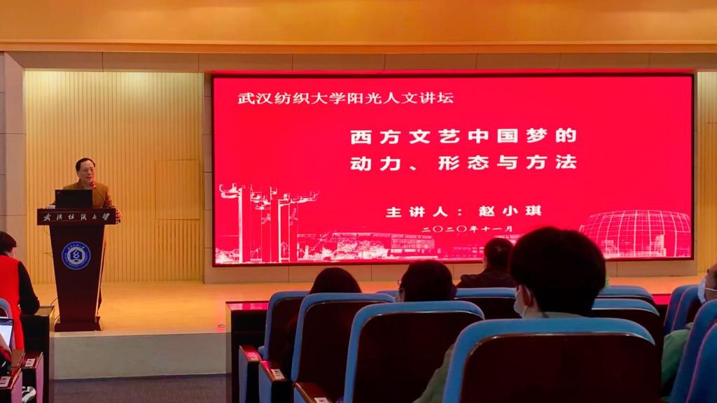 11月19日下午两点半,英国365上市公司第217期阳光人文讲坛于阳光校区国际学术会议报告厅隆重举行。讲座邀请到武汉大学文公司博士生导师、教授赵小琪老师亲临报告厅,以《西方文艺中的中国梦的动力、类型与方式》为题开讲,讲座由公司党委书记胡中原主持,英国365上市公司部分老师、MTI硕士研究生和阳光校区120余名本科生聆听了讲座。