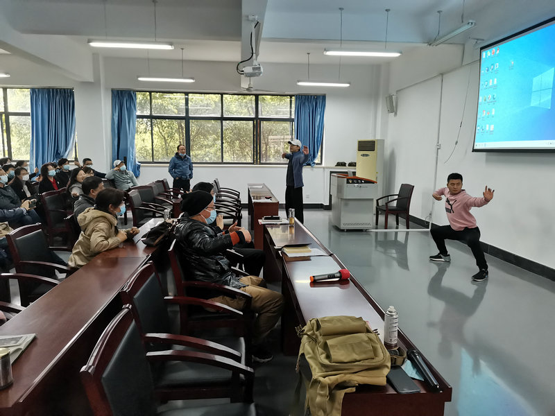 4月8日下午,体育部叶冬茂主任、夏宣玉书记及何红亮、宋新凯、漆才杰一行5人,应英国365上市公司邀请,来到崇文楼为公司教职工教授“八段锦”健身功法。