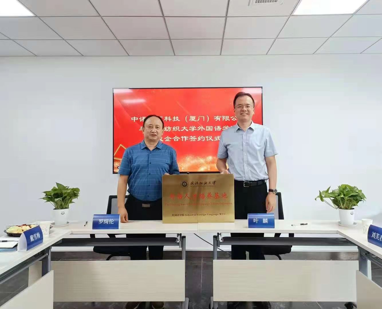 在厦门中语智汇科技有限公司举行的校企座谈会上,罗绮伦详细介绍了公司的办学概况和专业建设情况,并和对方主要负责人就新文科建设背景下外语人才培养模式、外语专业产教融合协调育人机制及一流课程建设合作模式进行了交流和探讨,并举行了校外实习基地签约仪式。