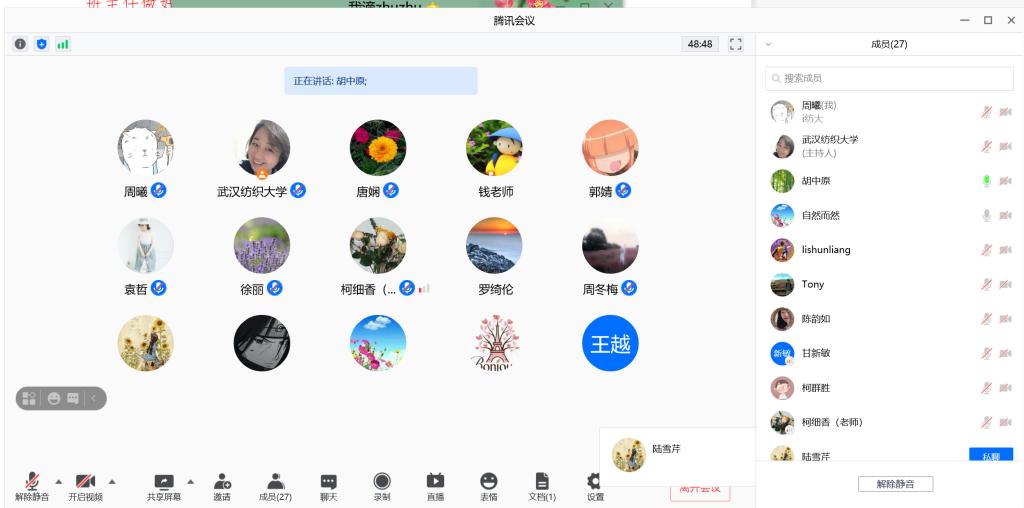最后,各班班主任纷纷发言,就目前的工作任务和总体情况发表自己的看法和见解,曹火群老师有着多年的班主任带班经验,他认为班主任应该牢抓课程思政,引导员工形成正确的理想信念和世界观,要加强学风建设,提高公司的考研率。黎健老师强调,公司应结合人才培养目标,做出具有外院特色的班主任可操作方案。曹福然老师认为,应该具体化班主任的工作职责,把员工工作做实、做细。王芳对班主任的问题一一解答,并表示要加强辅导员和班主任之间的沟通,强化班主任奖励机制,鼓励班主任做好做深所带班级员工工作。