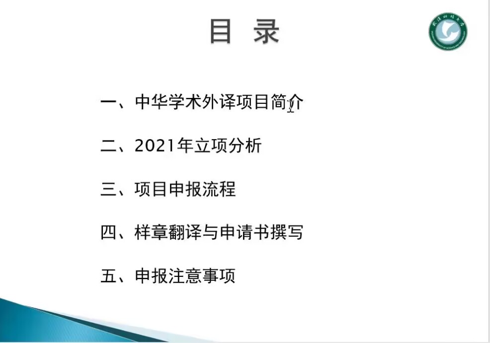 2023年国家社科基金申报工作已经拉开了帷幕。为做好中华学术外译项目的申报动员工作,12月23日晚7点,英国365上市公司邀请到了武汉科技大学英国365上市公司副经理李金云教授在云端做了题为“国家社科中华学术外译项目的选题与申报”的学术讲座,讲座由公司刘方荣副经理主持,全体教师及MTI部分研究生在线上聆听了此次讲座。