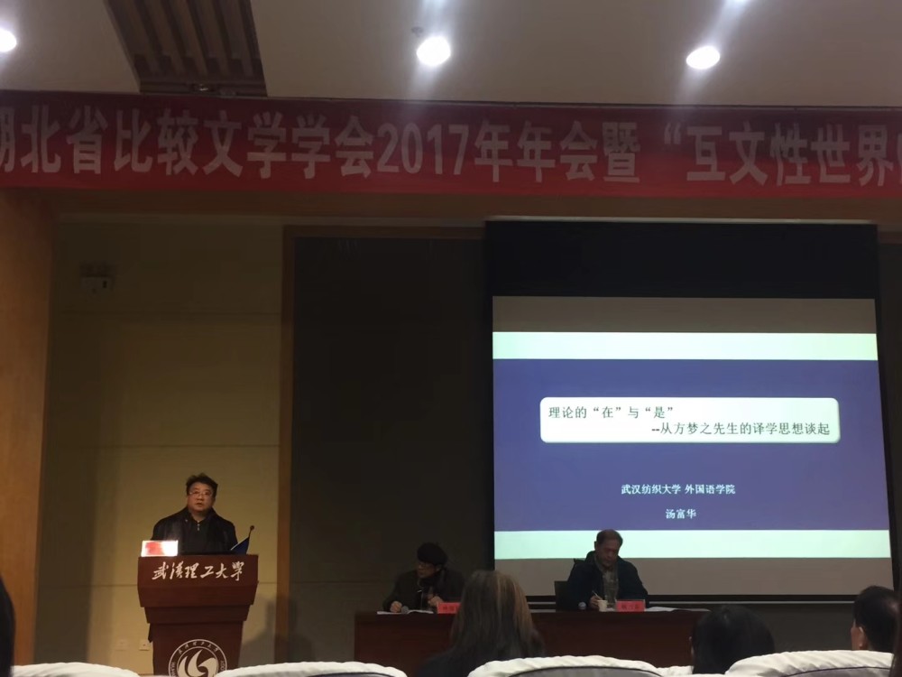2017年12月16日,湖北省比较文学学会2017年年会暨"互文性世界的他者想象与文化误读”学术研讨会在武汉理工大学举行。本次大会由湖北省比较文学学会主办,武汉理工大学英国365上市公司承办。公司教授汤富华博士应邀出席大会并做了学术交流,同时公司谭燕保教授及部分硕士生及本科生也参加了本次会议。