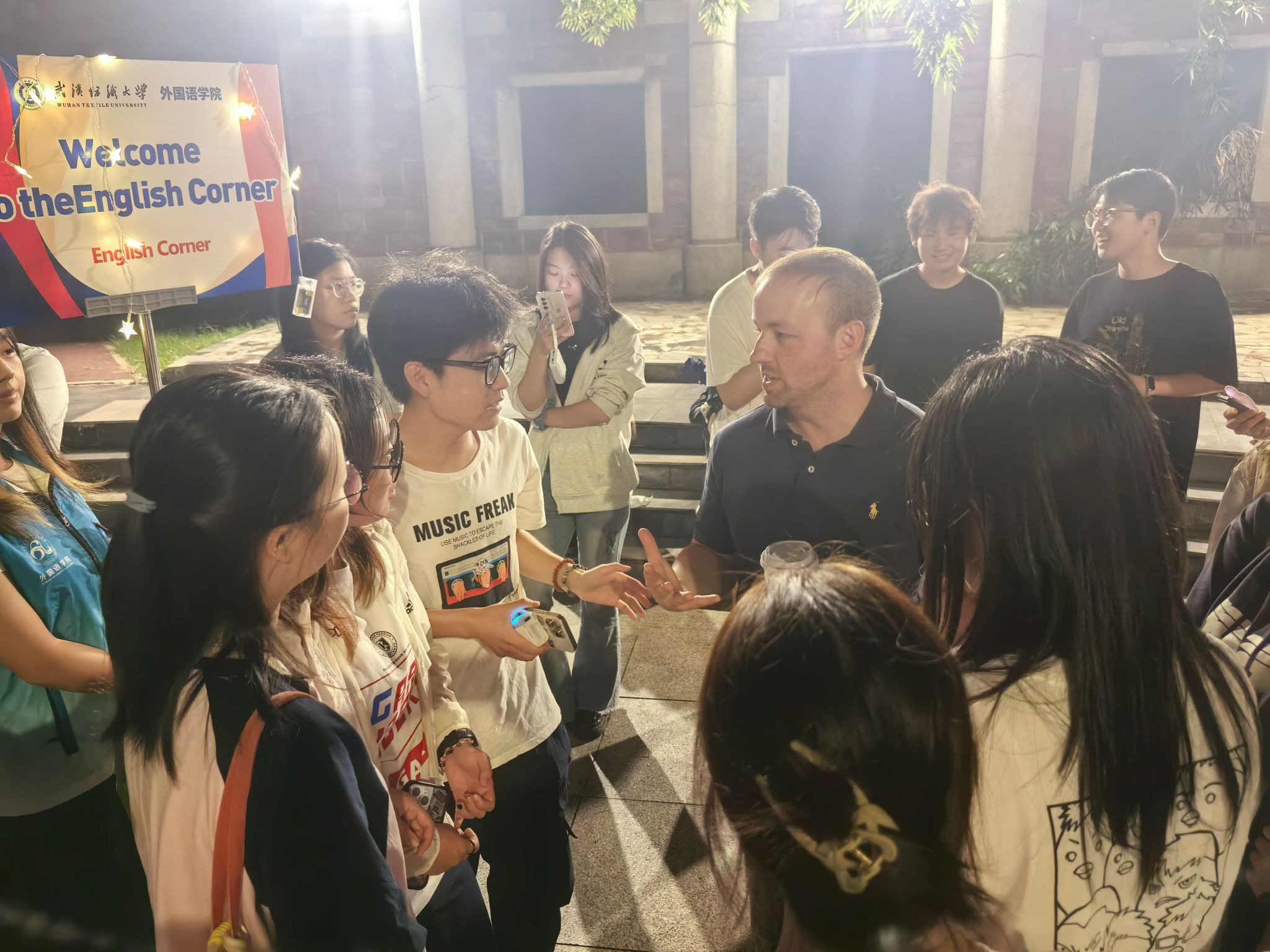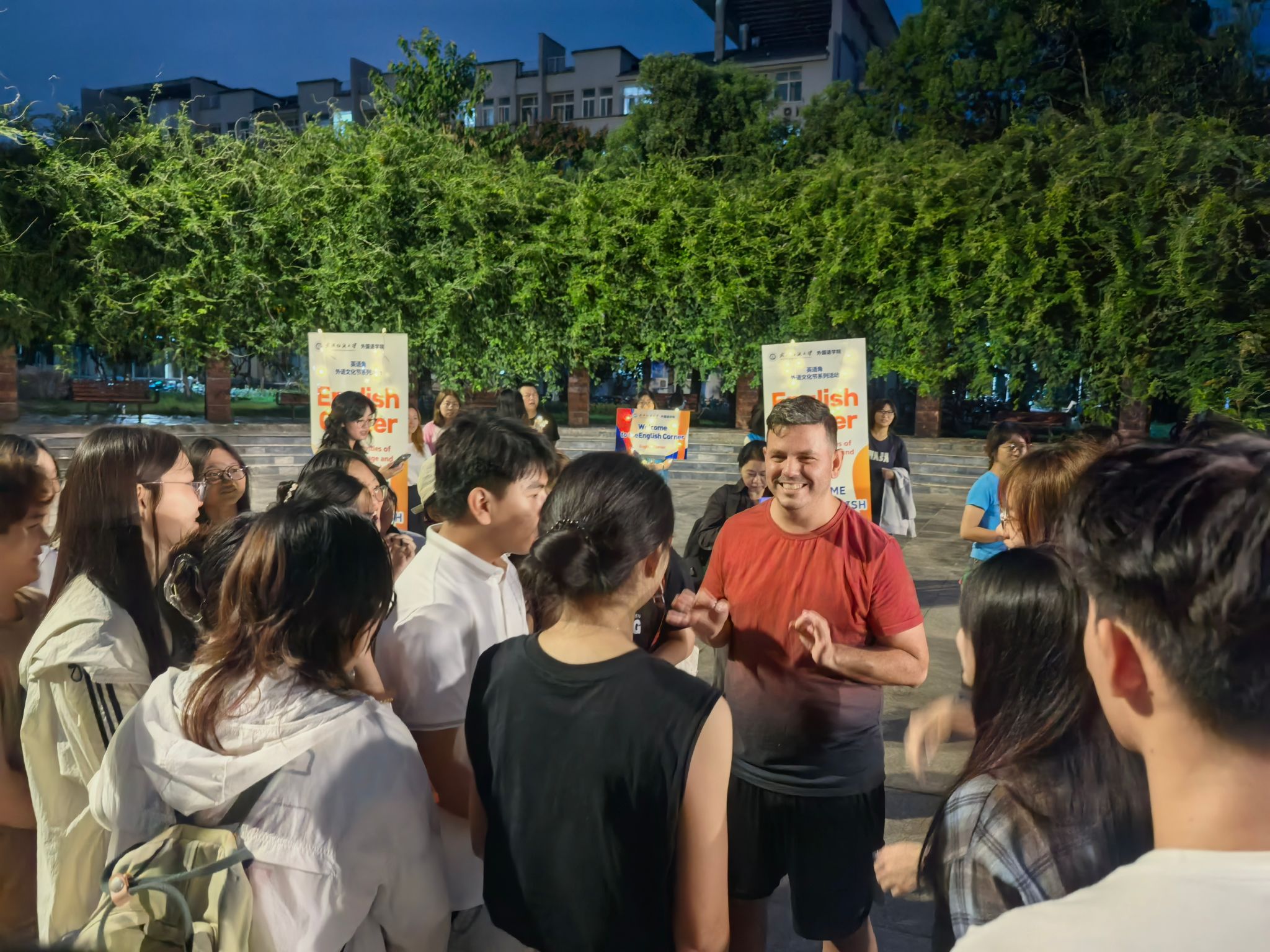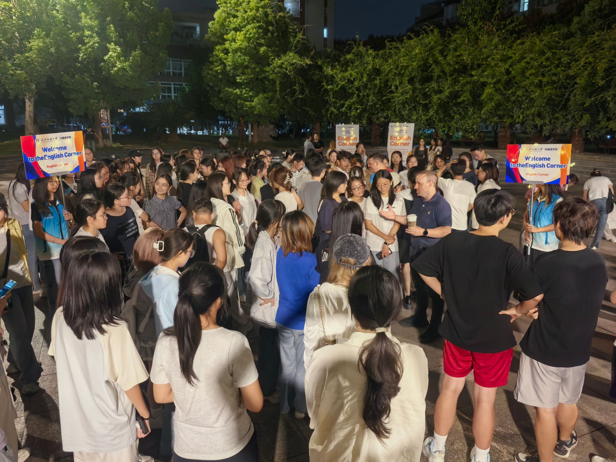 活动在设计上别出心裁,突破了传统单调的对话模式。在外教和老师们的引导下,活动现场设置了多个有趣的互动环节。同学们围绕各类贴近生活、充满趣味的话题畅所欲言,从校园生活、兴趣爱好到中外文化差异,展开了热烈而愉快的交流。至善广场上欢声笑语不断,思想的火花在英语的碰撞中频频闪现。老师们幽默风趣的谈吐和地道的表达方式,极大地激发了同学们开口说英语的兴趣和信心。