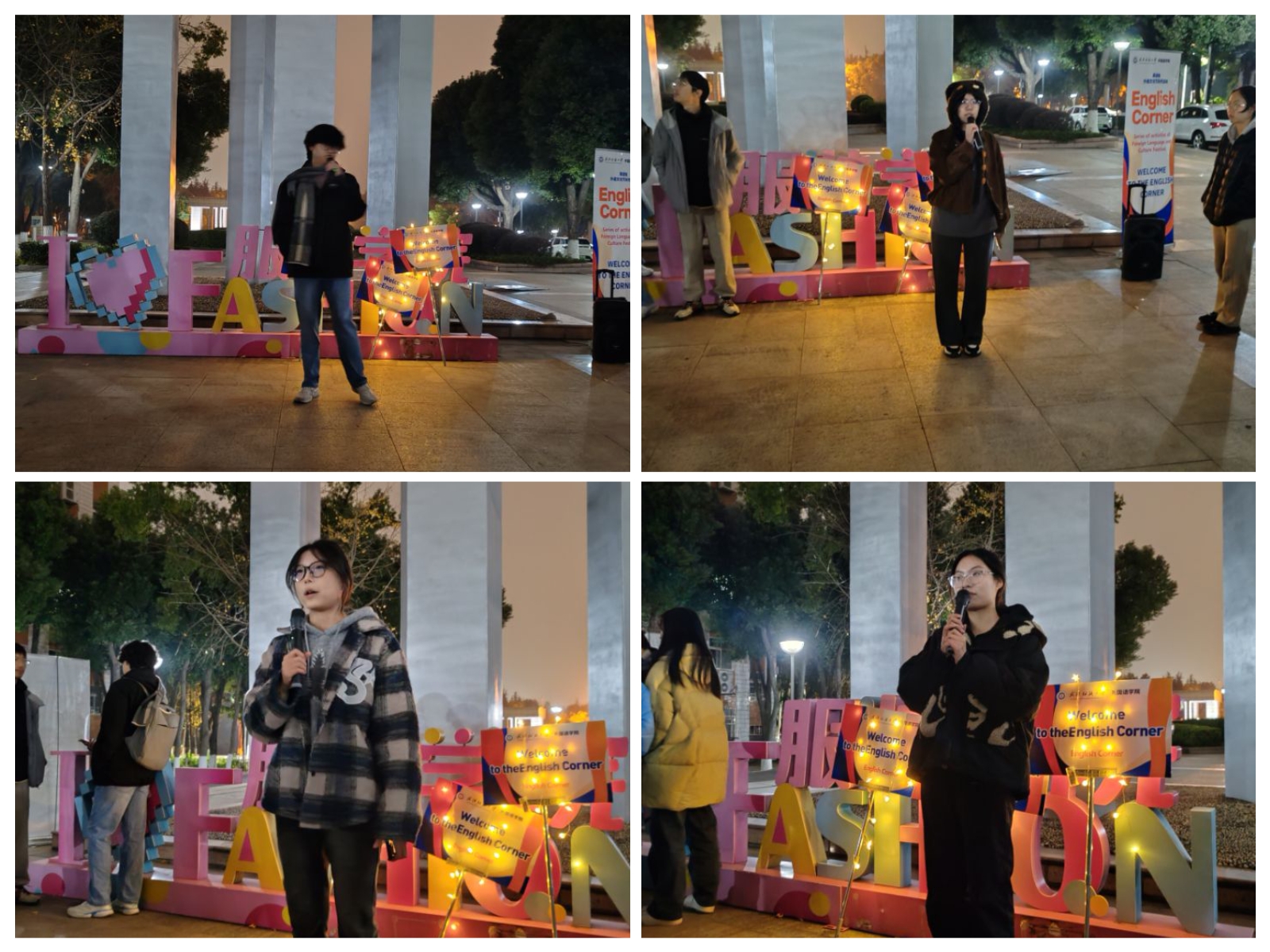 活动期间,两校区的英语角现场均呈现出活跃而有序的景象。围绕各类贴近生活、社会及专业学习的话题,同学们自信地运用英语展开对话、讨论甚至辩论。专业教师与来自不同国家的外教们深入各个小组,耐心倾听,适时引导,不仅帮助同学们纠正发音、优化表达,更分享了语言背后的文化内涵与思维差异。师生间打破了传统的课堂界限,在轻松愉快的互动中实现了知识的传递与情感的联结。