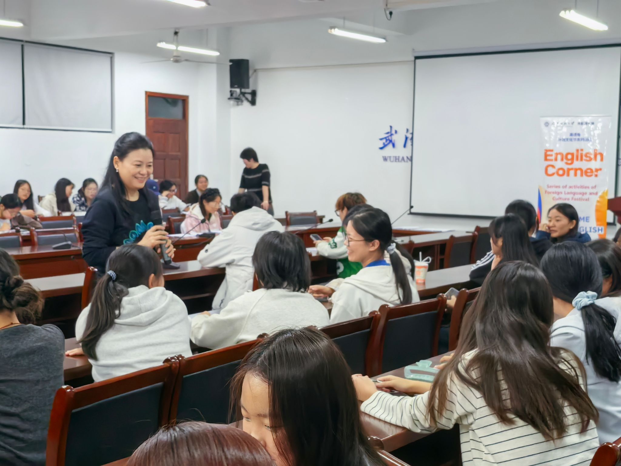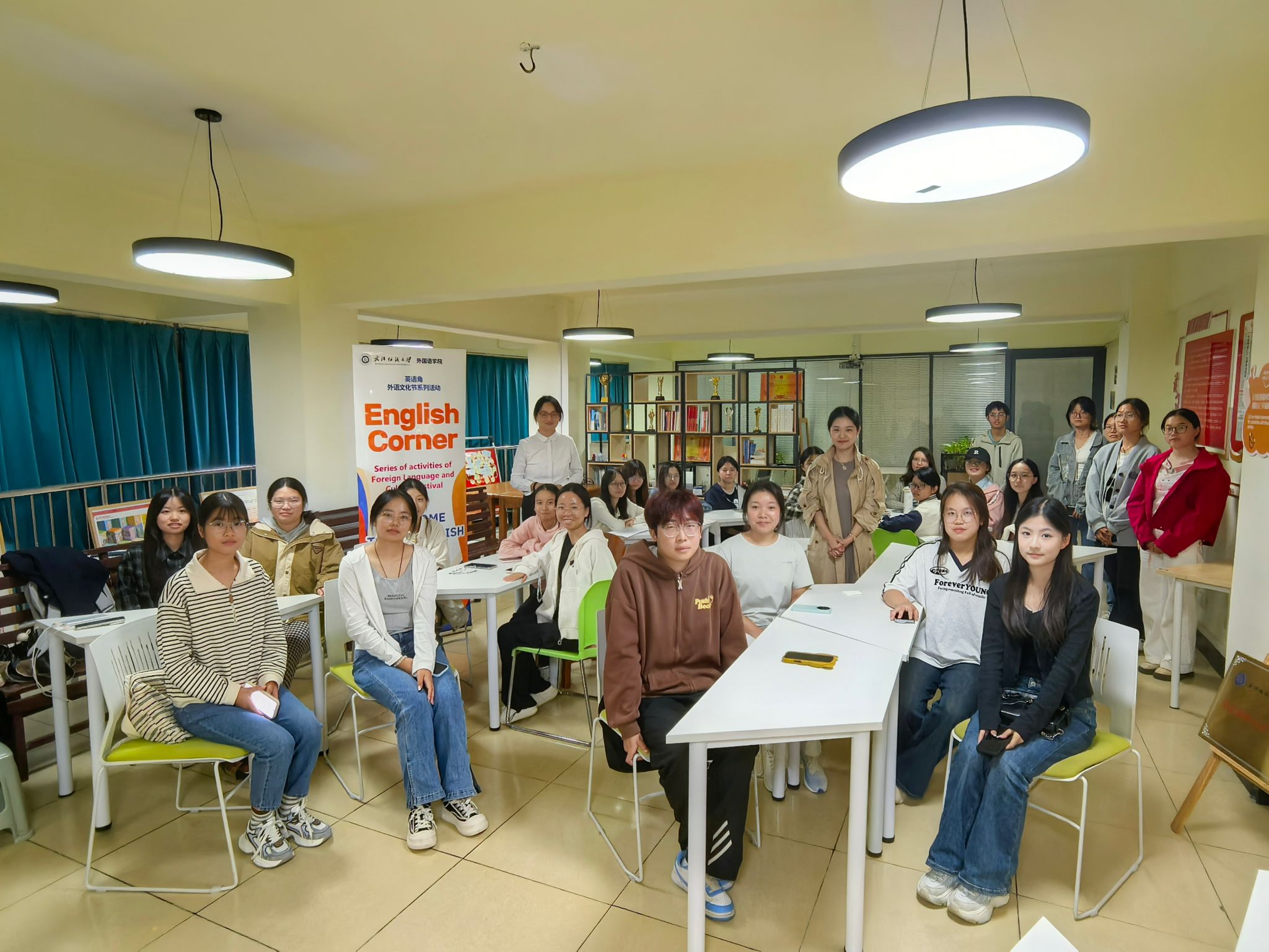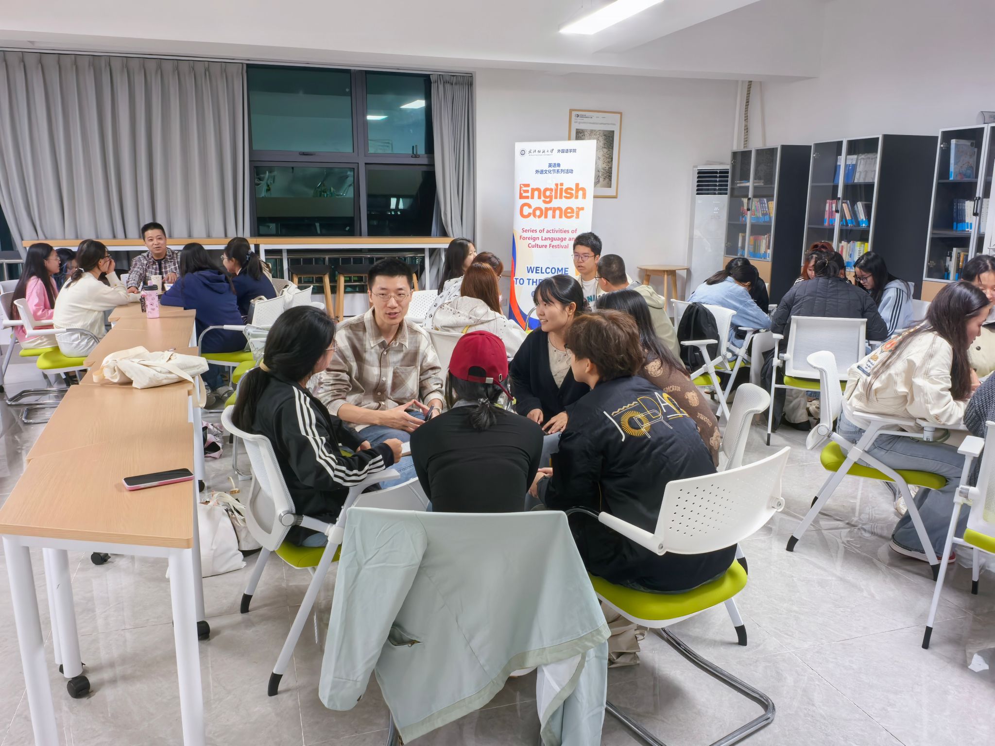 10月16日晚,英国365上市公司于阳光校区成功举办了一场别开生面的迎新主题校园英语角活动。本次活动特别面向2025级本科及研究生新生,同时吸引了来自全校各公司的英语爱好者参与,共计约200名师生齐聚一堂,在轻松愉快的全英文氛围中开启了新学年的语言实践与文化互动之旅。公司副经理罗绮伦、党委副书记彭阳慈航与多位专业教师、外籍教师共同参与,与员工们进行了深入交流。
