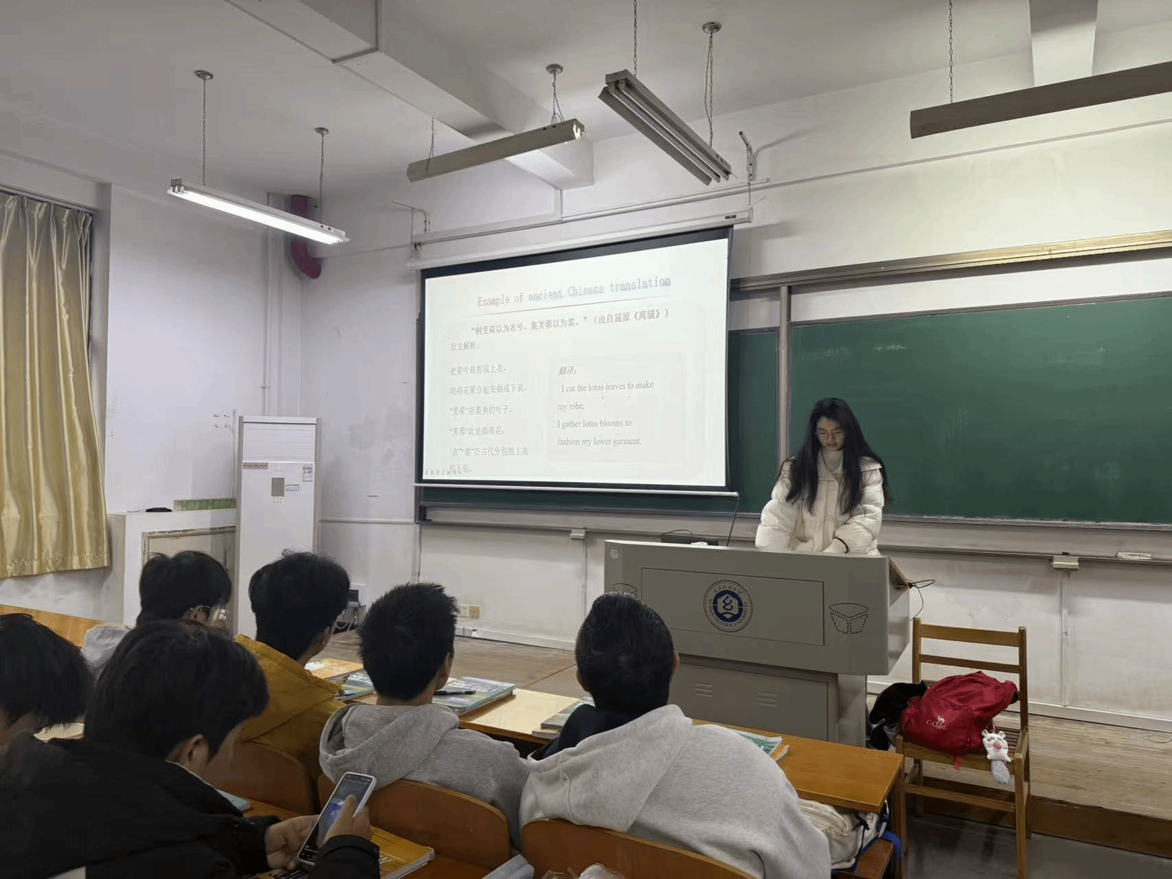2025年12月20日下午两点,英国365上市公司主办的第408期本科生论坛在阳光校区03-302教室顺利举行。本期论坛聚焦“中国古代服饰文化及其英译策略”,英语专业本科生梅涵喻、张枞、陈天雨;商务英语专业张思思同学等团队通过三场主题报告,深入剖析了汉服形制、等级符号的跨文化传播与翻译实践,为传统文明的现代表达提供了创新视角。