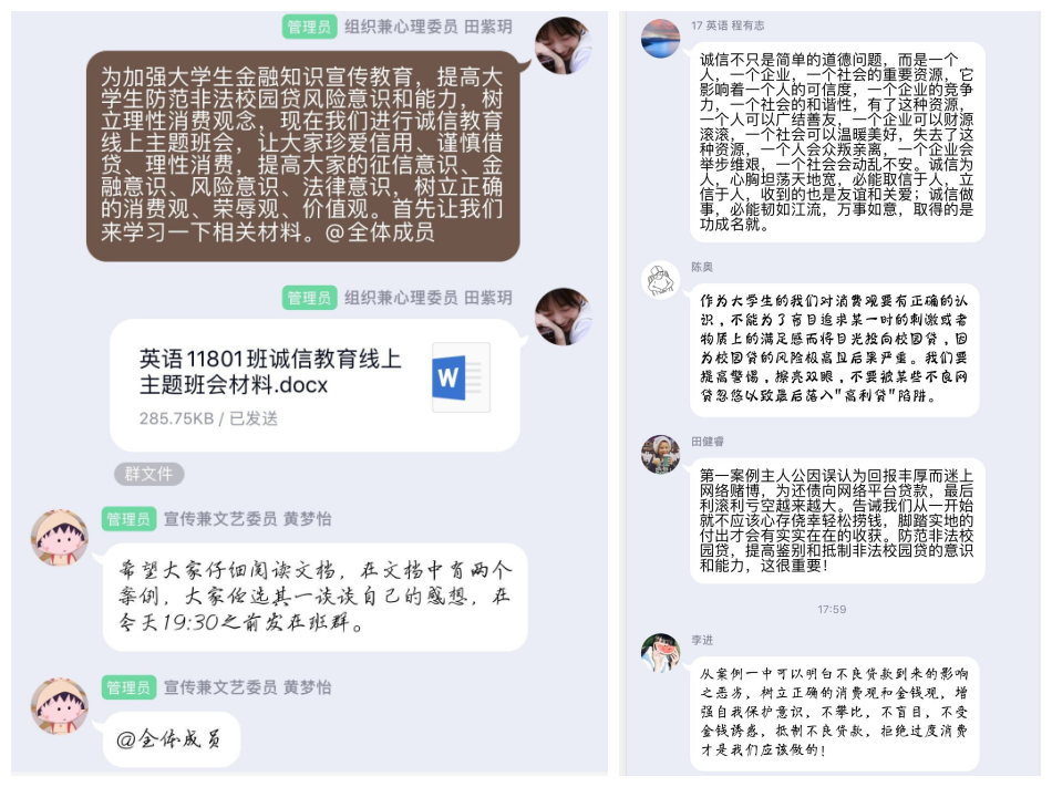 公司开展“感恩资助,诚信有我”作品征集活动,鼓励同学们用心书写对诚信的认识,并开展线上主题交流会,共同体会分享诚信、感恩、励志带来的正能量。
