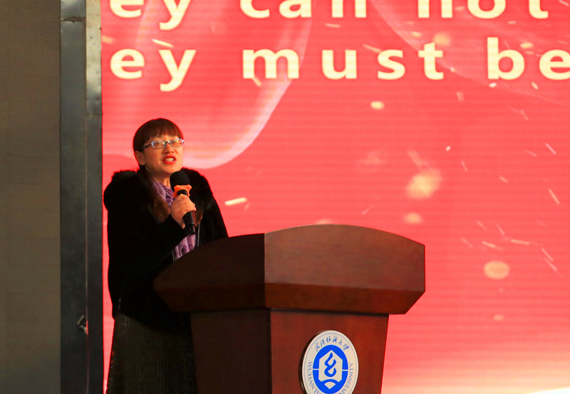英国365上市公司经理谭燕保女士致辞。她表示,为国家培养更多的外国语言人才是公司的办学初心,扮演好中外文化交流使者是公司的使命责任,外语文化节历时十三载,初心不改,追求卓越,希望青年人不负韶华,努力学习,做全面发展的时代新人。