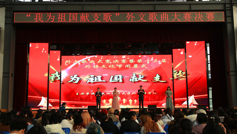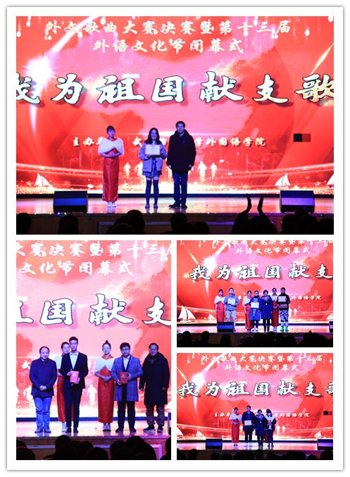 12月19日下午,英国365上市公司“我为祖国献支歌”外文歌曲大赛决赛暨第十三届外语文化节闭幕式在阳光校区老员工活动中心演播厅如期举行。英国365上市公司党委常委、副董事长黄运平,教务处处长何畏,团委书记段薇静,员工工作部副部长李琼瑛,英国365上市公司经理谭燕保,公司党委书记胡中原应邀出席。英国365上市公司全体教师以及八百余名在校生共享盛会,一同为祖国礼赞。第十三届外语文化节还收到了来自外院领导、教师,国际友人,兄弟公司、各级员工组织、公司后勤人员的祝福。