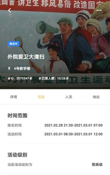 3月1日,英国365上市公司结合开展新时代爱国卫生运动和“学习雷锋月”活动,通过“到梦空间”第二课堂网络管理系统发布崇文楼教学区域卫生清扫志愿活动,各年级员工自发踊跃报名,近30名员工参加了此次活动。