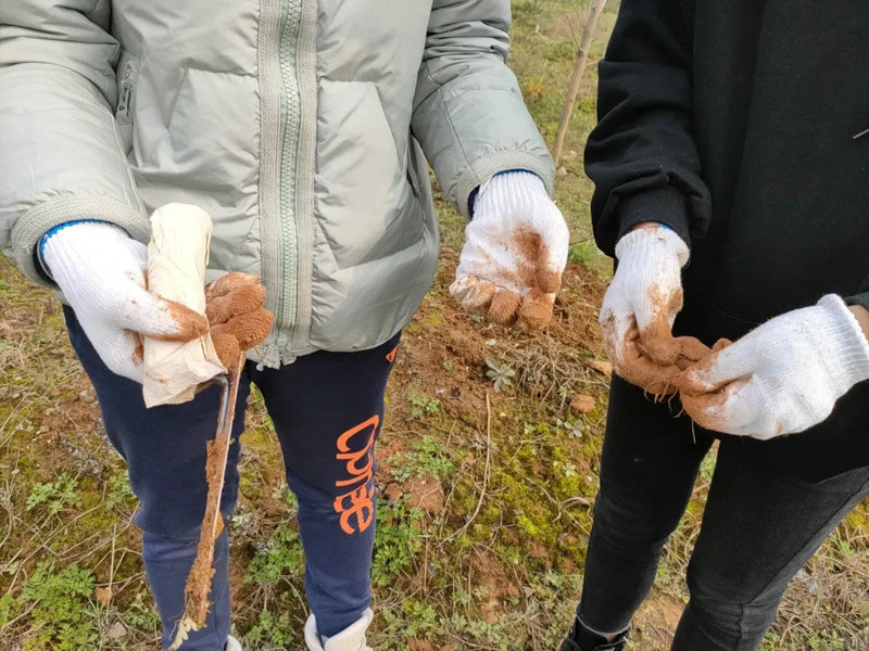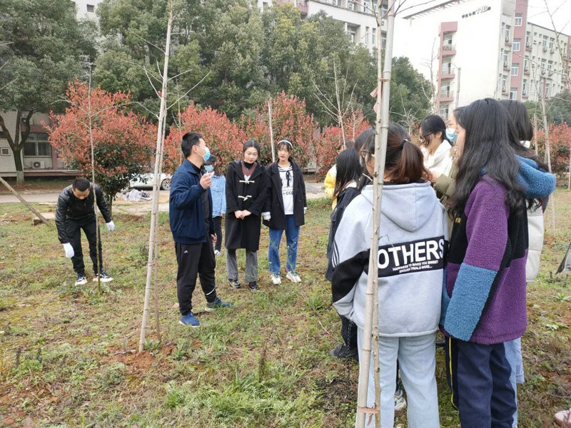 在银杏林,后勤老师首先向同学们示范了杂草处理的方法,通过手拔刀铲,将树根一圈围土内的杂草清理干净,然后把除掉的杂草覆盖在树根处,自然分解后又会变成土壤的肥料。同学们有序分配好工具和装备后,两人一树,按照老师的示范,迅速忙碌起来,你来松土,我来除草,干得十分起劲。