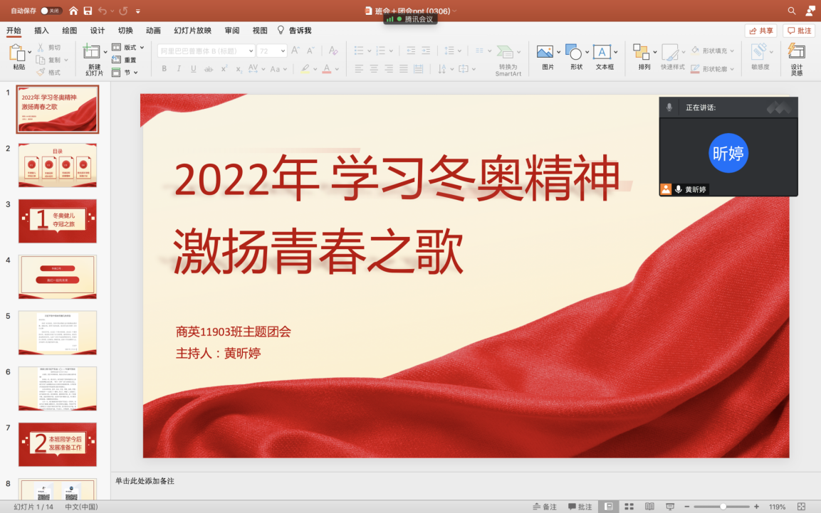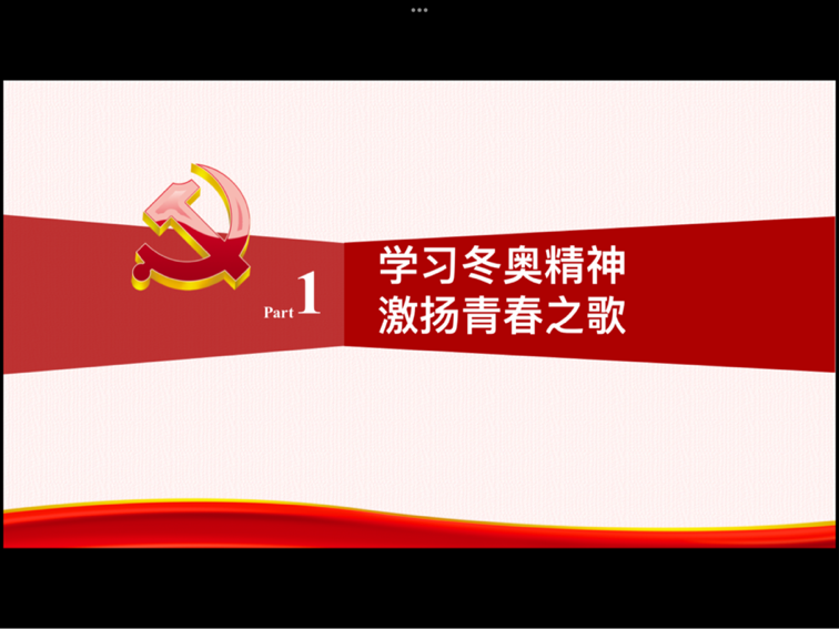 首先,各班团支书对冬奥会的相关以及冬奥会中奥运健儿夺冠事迹进行了讲解,运动员们刻苦训练,为心中的信念与理想不断拼搏奋斗,一次又一次超越自我,挑战自我。冬奥会正值寒假期间,许多共青团员或与家人做伴,在电视机前观看赛事,当团员们看到中国选手夺冠后,心中热情激昂,满载着自豪感。
