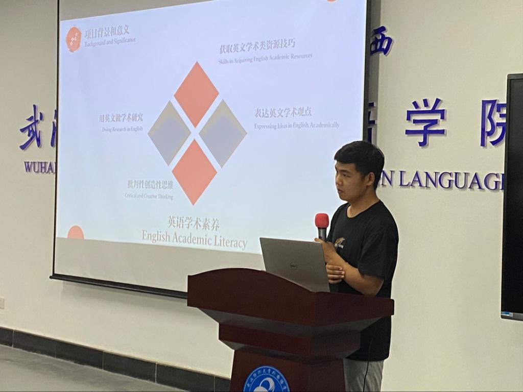 首先进行展示的,是来自英语专业的蔡文斌同学,他的展示项目是《非英语专业英语学术素养调查研究》。蔡文斌同学基于对公司非英语专业员工英语学习现状的调查研究,运用本专业的专业性学科知识,对数据进行了删选、分析与理解,基于非英语专业员工学习英语的需求,为他们提供了有效的解决方法。