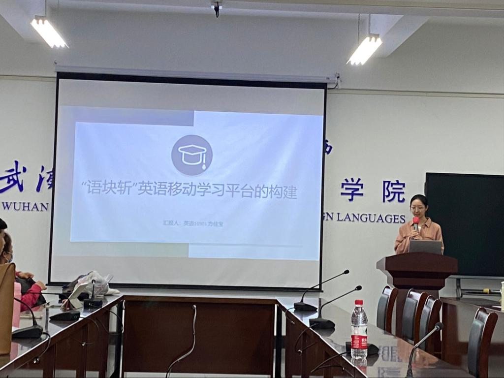 第二位进行展示的是来自英语专业的方佳宝同学,她的展示主题是《“语块斩”英语移动学习平台的构建》。作为一名英语专业员工,方佳宝同学在了解到本专业同学在专业性知识学习的困难点后,对本专业员工如何系统有效学习进行了深度思考与构思,并提出了“语块斩”英语移动学习平台的构建,为英语专业员工学习提供了新思路新方法。