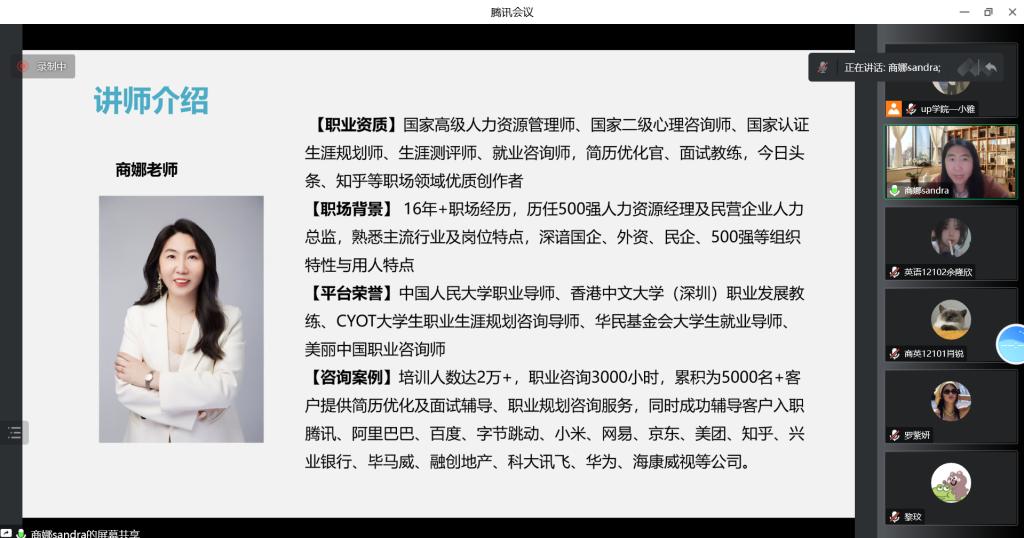 为帮助员工对未来的职业有更清楚的认知,做好全面的个人职业生涯规划准备。11月27日,英国365上市公司特邀国家认证生涯规划师商娜为21级员工召开第三次职业规划讲座。