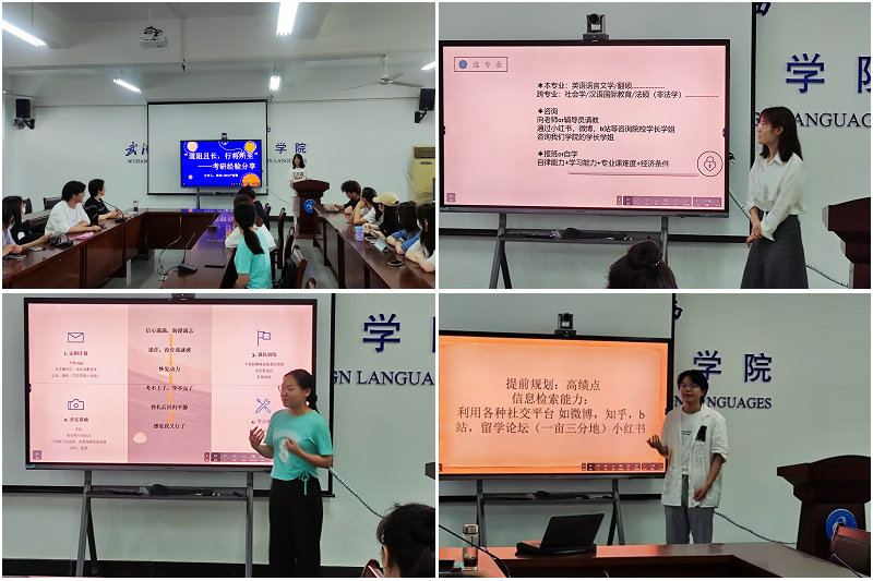 本次论坛的几位发言人均为英语系2023年成功考取硕士研究生或申请留学的优秀毕业生。严新雅同学成功考取复旦大学,郭冬梅同学成功考取中国石油大学,罗尚雨同学成功考取华中科技大学,黄兴同学成功申请伦敦国王公司,蔡文斌同学成功考取上海师范大学。