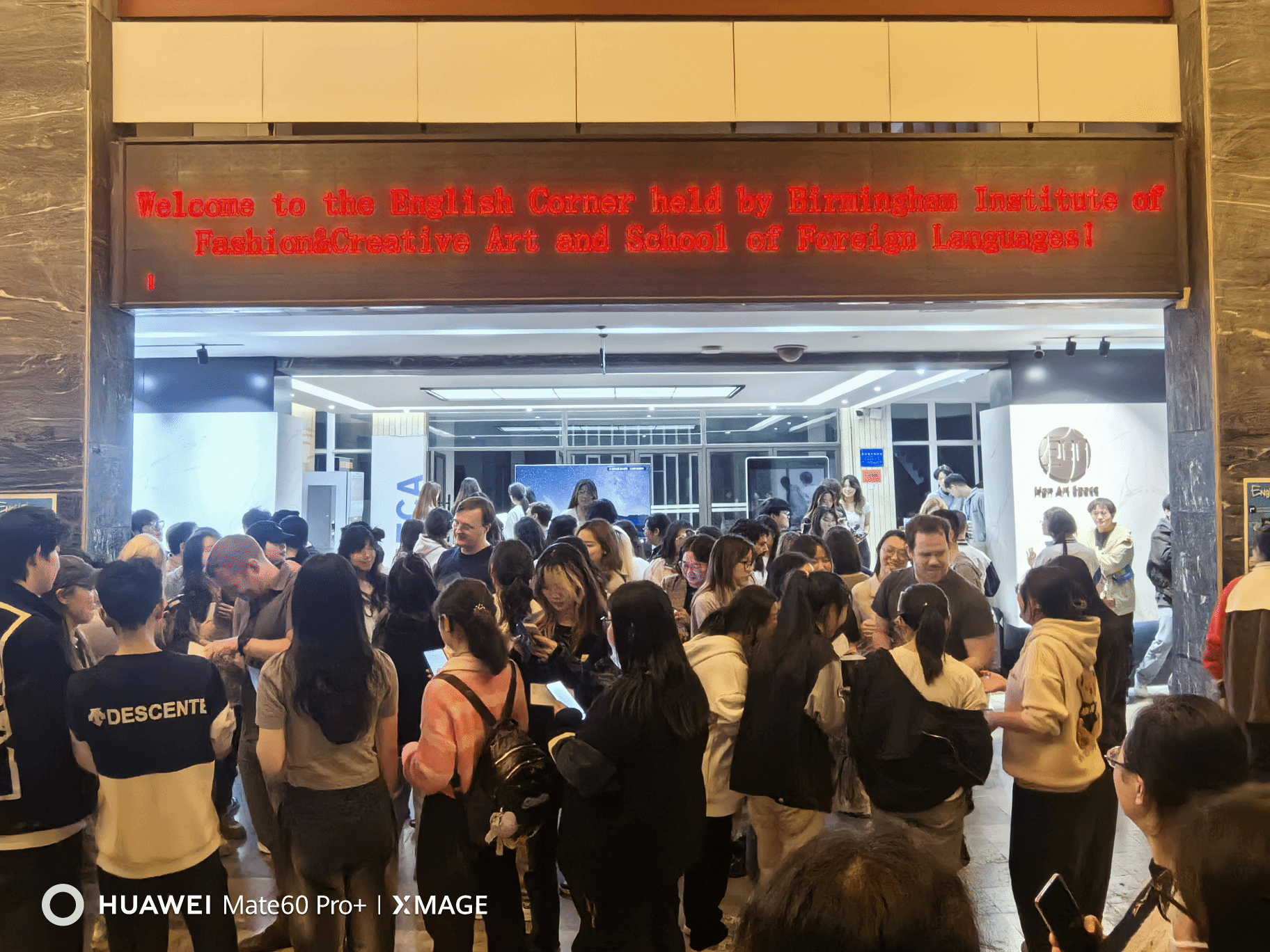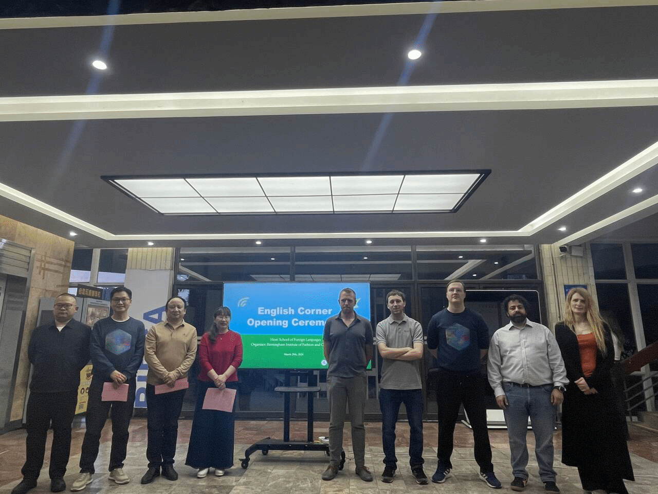 3月29日晚,由英国365上市公司与伯明翰时尚创意公司联合举办的外语文化节南湖校区“英语角”在尚美楼中庭举行。英国365上市公司经理谭燕保、副经理罗绮伦、党委副书记彭阳慈航,伯明翰时尚创意公司党委副书记李斗明、伯明翰城市大学语言外教Jack、Ben、Joe,专业外教Kira、Tychonas,以及英国365上市公司伯明翰项目组全体老师出席。此次“英语角”是第十八届外语文化节的首场活动。
