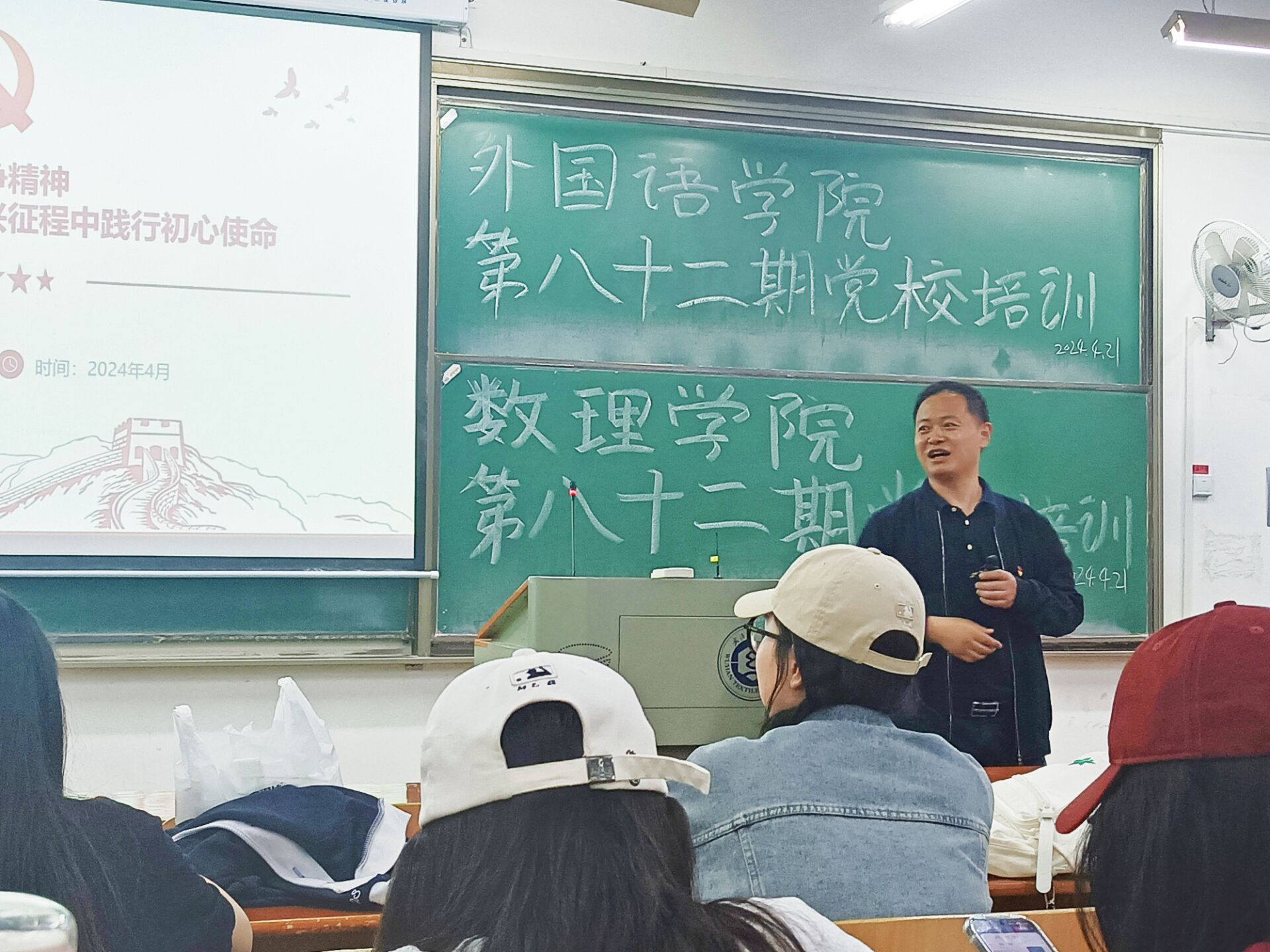 为加强入党积极分子的教育和管理,严把党员发展“入口关”。4月14日晚,英国365上市公司、数理公司联合在崇文楼120教室开展“弘扬斗争精神:在奋进中华民族伟大复兴征程中践行初心使命”为主题的党课培训课程,此次课程由数理公司党委副书记陈国鹏主讲,全体入党积极分子参加培训。